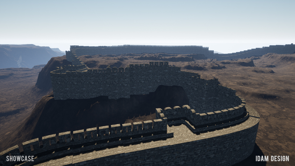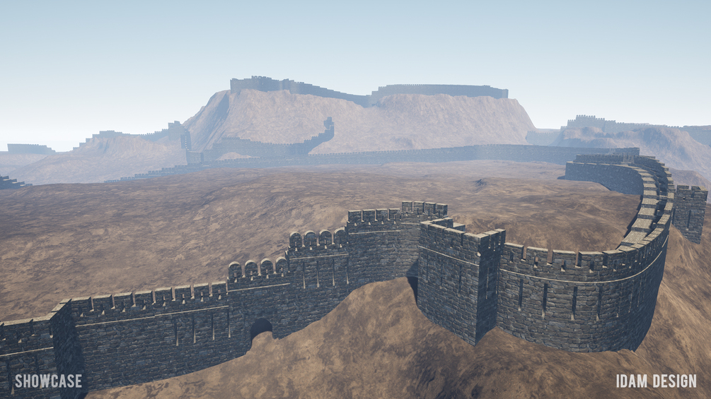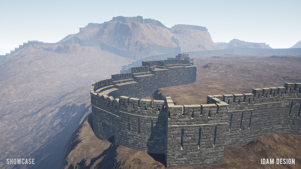 Unreal Engine 4.27-5.3 Blueprint to quickly create realistic fortwalls in landscapes. 3 maps (level scenes) included, that describe the process, list the assets, and a showcase level as seen in the screen shots. All that is shown is included!